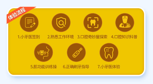 体验内容:口腔知识科普、正确刷牙指导、小牙医实操等