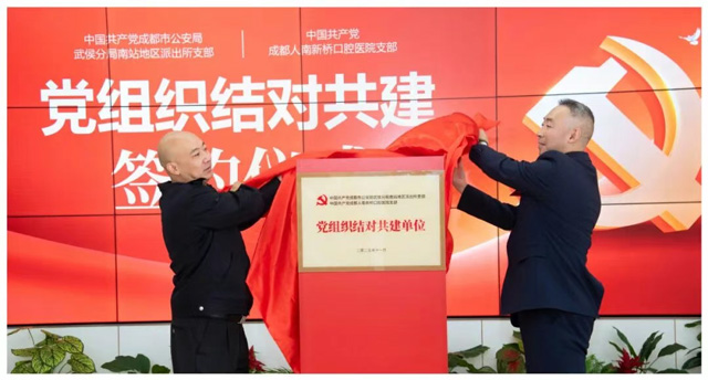 签约仪式上,成都市公安局武侯分局南站地区派出所党支部书记付亮、成都人南新桥口腔医院党支部书记左强国分别介绍了各自单位的党建工作情况,并对结对共建后党建工作的开展表达了殷切的期待。