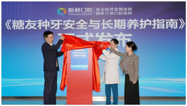 随后,袁群教授、李阳军主任与士卓曼品牌代表共同发布了《新桥口腔糖友种牙安全与长期养护指南》。该指南深度融合了上述专家共识与临床路径,系统覆盖从风险认知、多学科协作到长期维护的全周期管理,为糖友口腔健康管理提供可靠依据。